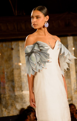 Sobre la última pieza con la que cerró la pasarela, Morlan dio un mensaje, en el cual era representar la parte donde los artistas textiles rompen lo tradicional, para pertenecer en la historia como fusión de arte y diseño.