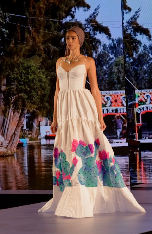 La diseñadora de moda mexicana presentó su colección “Flor de Cactus” compuesta de 10 vestidos en el Fashion Week de Nueva York.
