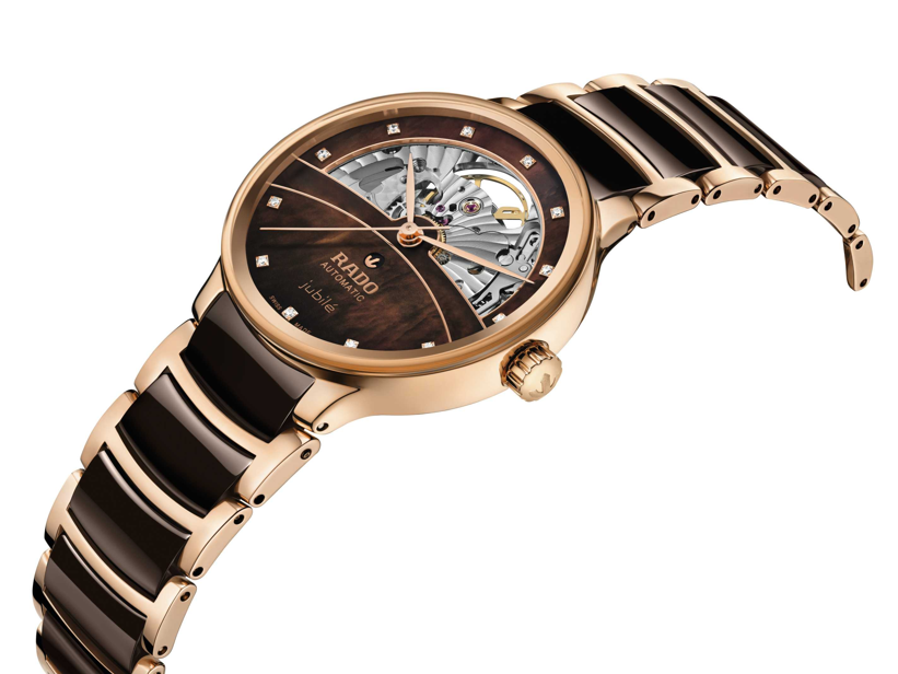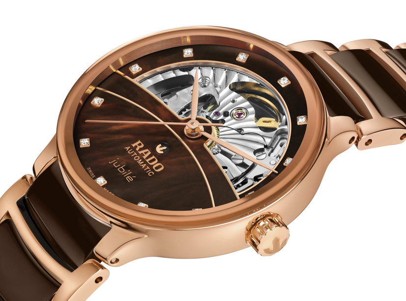 La colección incluye versiones Jubilé y Super Jubilé, con acabados que van desde el nácar blanco hasta el marrón oscuro, detalles en oro rosa con revestimiento PVD, cristal de zafiro curvado antirreflejo y brazaletes con cerámica de alta tecnología, un sello distintivo de Rado. Las versiones Super Jubilé se distinguen por un arco inferior engastado con diamantes adicionales, que convierten al reloj en una declaración definitiva de sofisticación y amor eterno.