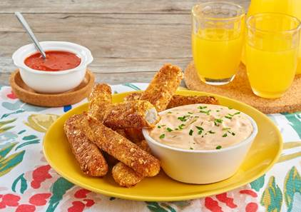 - Pasar los deditos de pescado por harina, huevo y pan molido. Freír los deditos de pescado hasta que estén dorados y completamente cocidos. Retirar el aceite y reposar en papel absorbente.